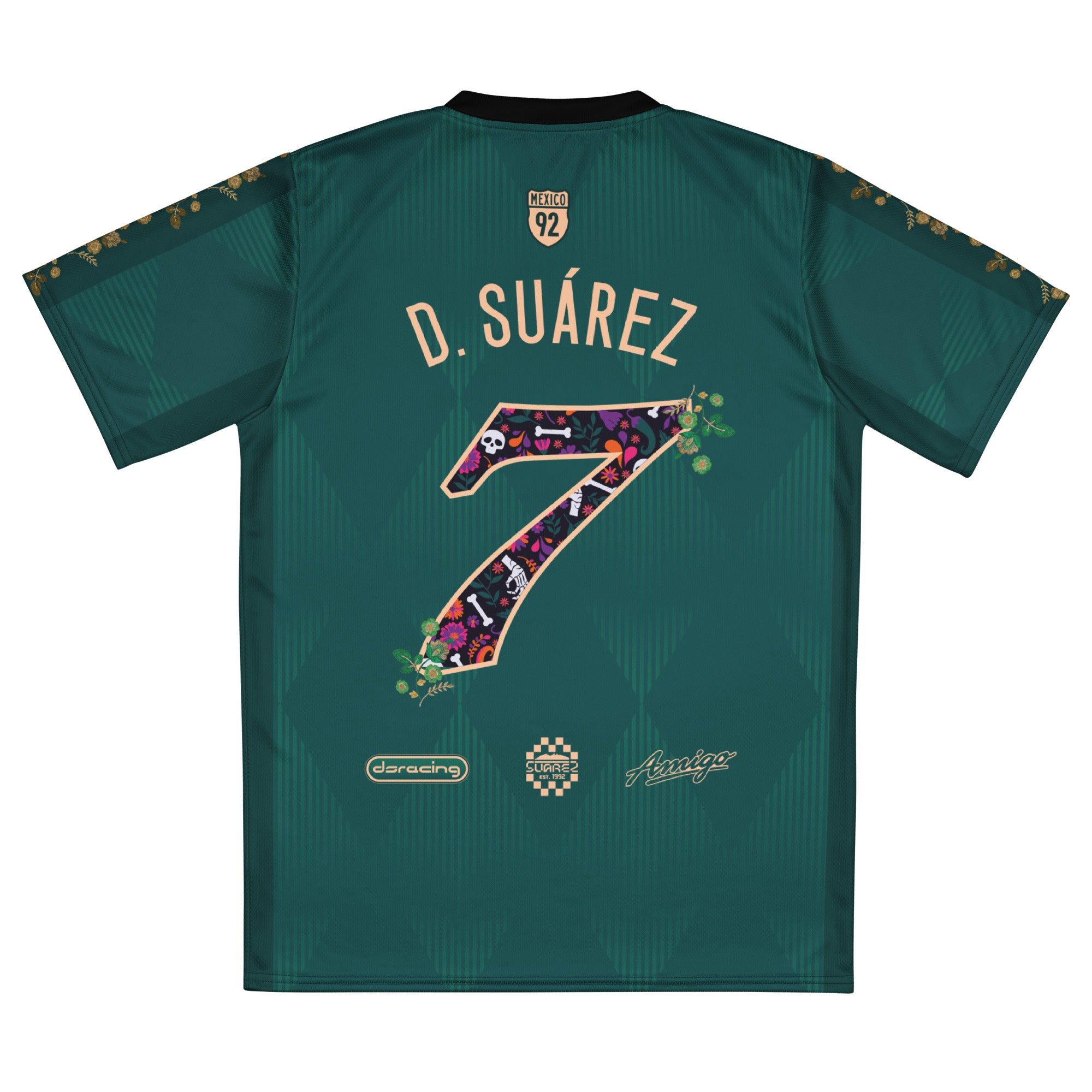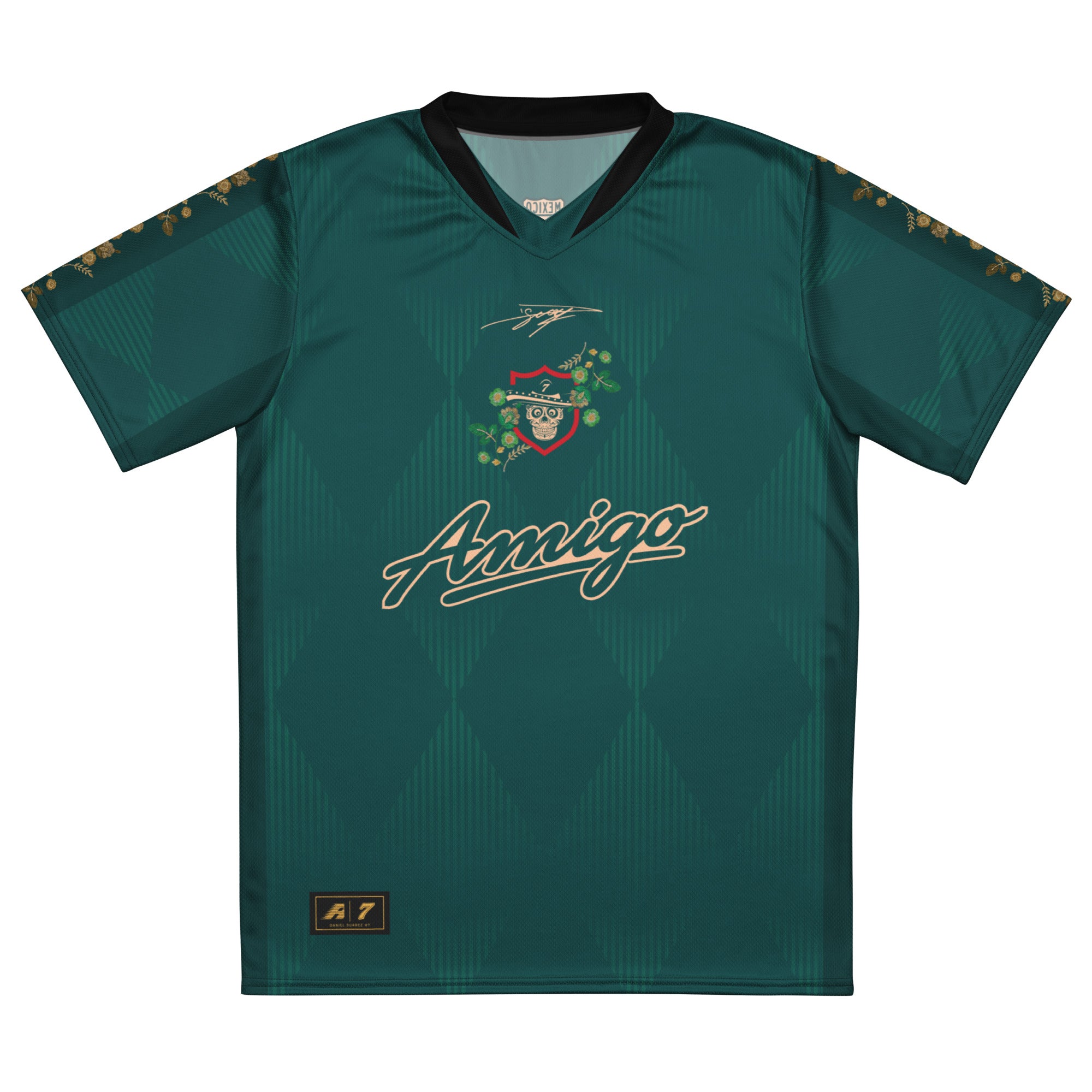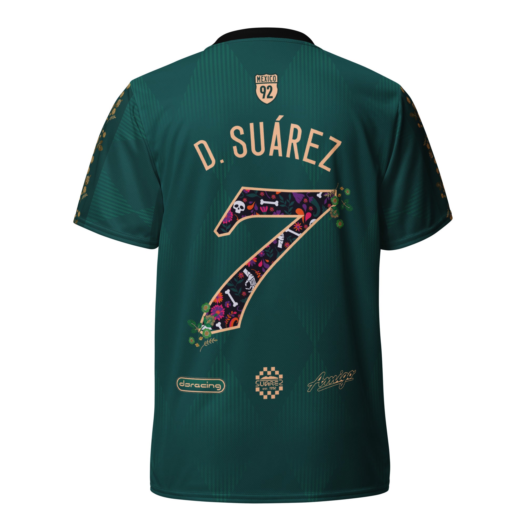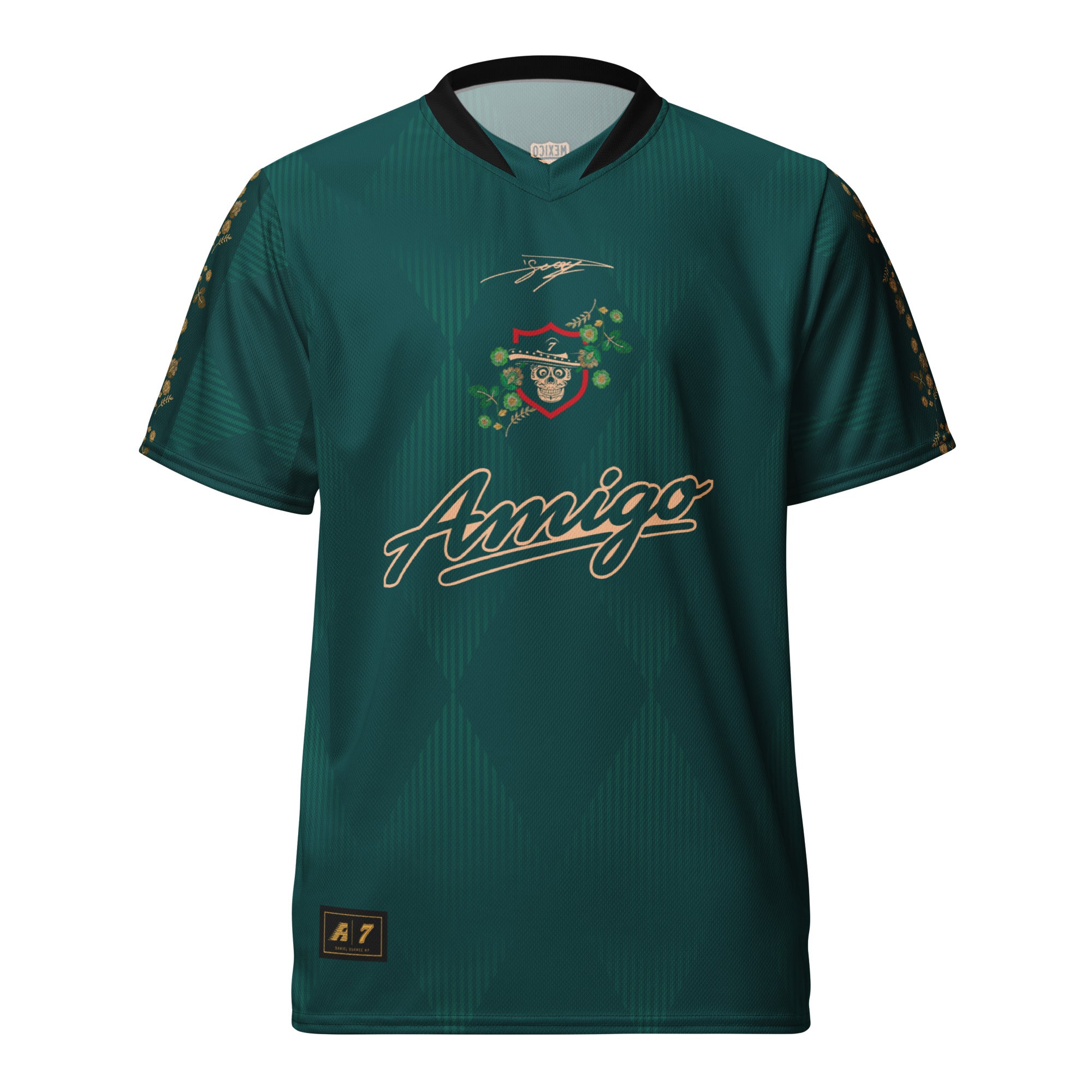 Celebrate culture, friendship, and racing pride with the Amigo No. 7 Jersey. Made of 100% recycled polyester fabric, this shirt is breathable, moisture-wicking, and has a double-layered v-neck collar that creates a premium look.